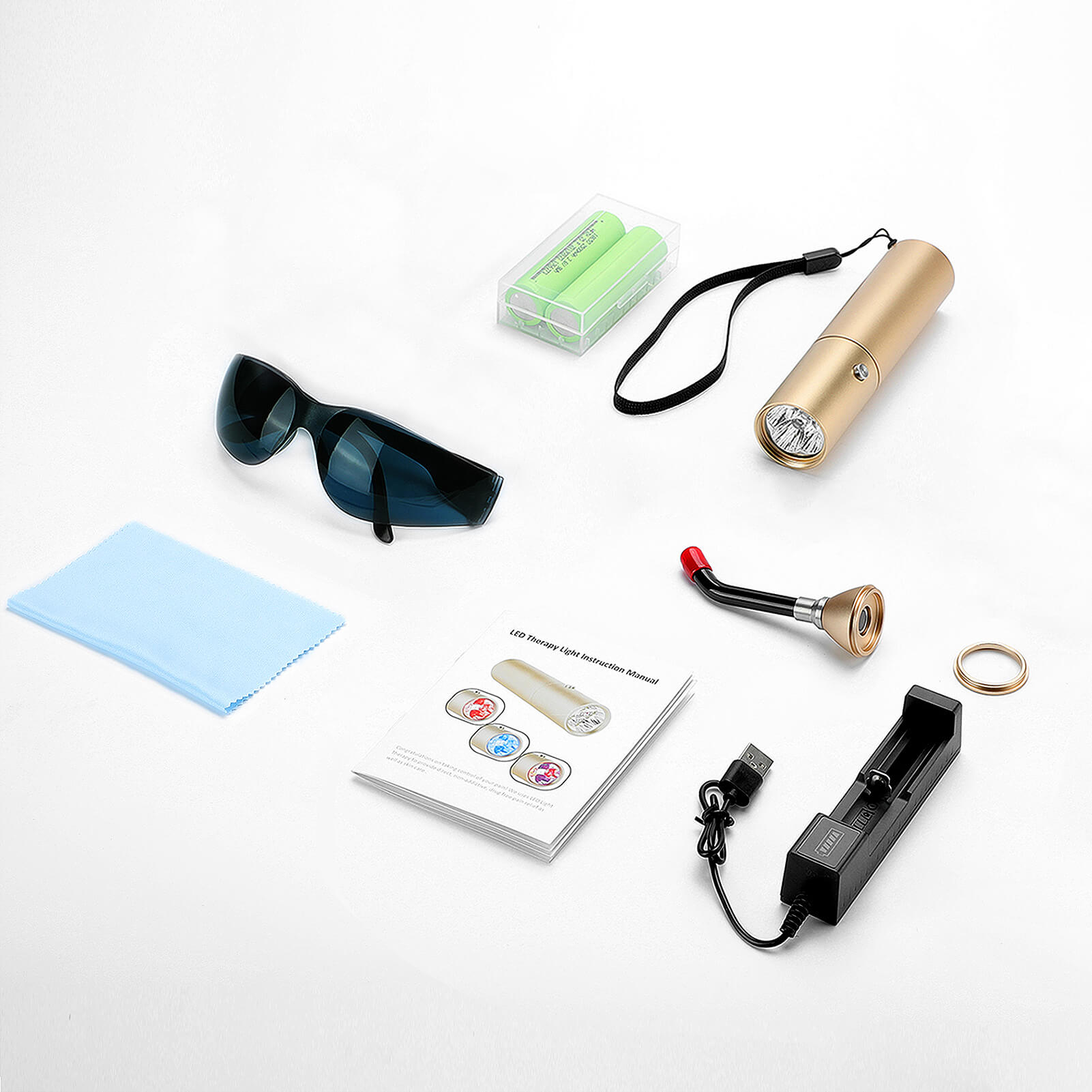 Our New red light therapy device torch can be used on any area of the body such as neck, face, hands, back, feet, finger. Anything in the first couple of inches of skin can be affected by this light, making it suitable for hair health, general skin tone/beauty, acne, eczema, wounds, bruises, sunburn, joint pain, wrinkle prevention, and much more. Especially, it takes a tip innovatively to treat mouth sore and pain relief in ear, nose and mouth